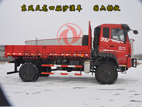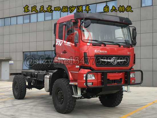 全新國六東風(fēng)四驅(qū)六驅(qū)沙豹沙漠車為特殊行業(yè)精心打造,適合全地形無路區(qū)域的全時4×4、6×6驅(qū)動車型,選用康明斯9升國六發(fā)動機,動力涵蓋340---400馬力,動力強勁、性能可靠,采用7噸及10噸級雙級輪減前、后橋,離地間隙大、通過性好,前、中后橋配備輪間、軸間差速鎖裝置可適應(yīng)極惡劣道路狀況下的通過要求,先進的遠距離電控氣動裝置可實現(xiàn)高、低檔及前橋鎖止功能的轉(zhuǎn)換,多管旋流式三級空濾進氣系統(tǒng)可有效地阻止極細微的粉塵進入發(fā)動機,外接式中央充放氣裝置可同時或單獨快速調(diào)節(jié)輪胎氣壓,越野和沙漠輪胎的互換可使車輛通過性適合各種地形地貌,選裝前后液壓絞盤等裝置能使車輛在各種環(huán)境下保持良好的狀態(tài)及自救互救功能,沙漠車使用工況:用于無路地域的貨物運輸,適應(yīng)沙漠、浮土、戈壁、礫石、泥濘、山地、崎嶇、冰雪等路況。耐溫±45℃,可作為石油物探、地質(zhì)勘查、大地測量、文物考古、草原監(jiān)理、畜牧防疫、森林消防、邊境巡邏、沙漠旅游等行業(yè)用車,是改裝專業(yè)工程車如:地震儀器、爆破器材運輸、沙漠冷藏、沙漠隨車起重運輸、工程搶險、林業(yè)吊運、搶險救災(zāi)等車輛及越野房車的理想底盤。