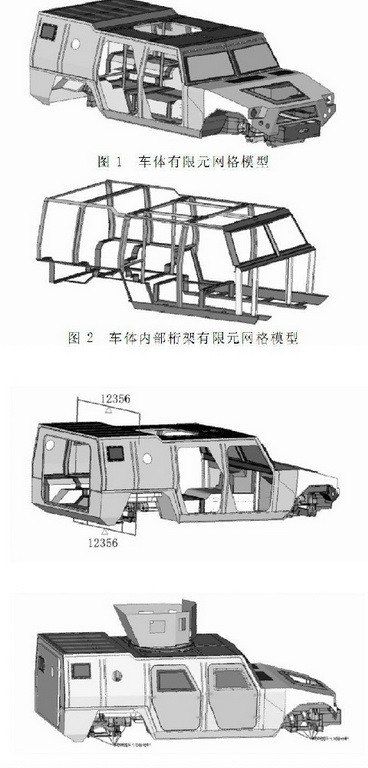 上圖是1代猛士裝甲車車身結構簡圖(由于長軸2代猛士仍然處于測試狀態(tài),引用1代猛士裝甲車結構進行比對說明),為了提升整車鋼性以及安全防護能力,上部分的車身焊接采用單獨全封閉結構(側圍、頂蓋、地板預先焊裝一體)。在A/B/C/D柱之間焊裝多條加強筋保證縱向結構強度。與美軍現(xiàn)役悍馬裝甲車(通過對基型車換裝裝甲板)不同的是,1代猛士裝甲車原廠狀態(tài)就采用可防護7.62毫米口徑穿甲彈在100米內(nèi)全向攻擊、12.7毫米口徑機槍彈正面攻擊、3公斤TNT當量爆炸物地面攻擊、以及105毫米口徑榴彈破片50米內(nèi)攻擊的均質裝甲板。