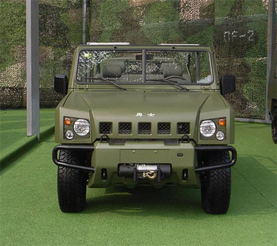 2007年8月2日,北汽控股公司在位于北京市順義區(qū)的北京汽車(chē)制造廠有限公司隆重舉行慶祝建軍80周年暨北京·勇士下線儀式。北汽勇士BJ2022型4×4軍用越野車(chē)自2007年列裝部隊(duì)以來(lái),“勇士”越野車(chē)作為我軍第二代軍用指揮車(chē),常年活躍在演訓(xùn)場(chǎng)上和邊防線上。2008年、2009年北汽勇士軍用車(chē)參加并圓滿完成汶川地震搶險(xiǎn),打擊暴恐勢(shì)力等多次重要軍事行動(dòng)!坝率俊笔怯杀本┢(chē)制造廠有限公司自主開(kāi)發(fā)的,擁有完全自主知識(shí)產(chǎn)權(quán)的中國(guó)21世紀(jì)0.5噸/0.75噸級(jí)越野車(chē)!坝率俊蓖獠吭煨褪窃谘芯苛藲W、美、日三大流派越野車(chē)造型發(fā)展趨勢(shì)的基礎(chǔ)上,結(jié)合中國(guó)文化特色和中國(guó)越野車(chē)的特點(diǎn)而設(shè)計(jì)的,具有原創(chuàng)性。