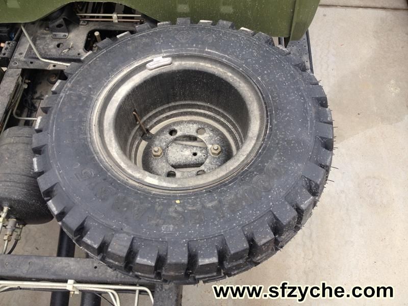 11R18型越野胎主要適用于軍用車輛行駛,可同時滿足軍用車輛在好路面上的高速行駛及在路況較差或無路情況下的越野行駛。該胎花紋采用無向塊狀設計,主行駛面花紋溝深度較淺且以縱向花紋溝為主,橫向花紋溝寬度較小,可提高輪胎的高速行駛性能、乘坐舒適性和操作穩(wěn)定性;胎肩部位的花紋以橫向花紋溝為主,花紋溝較寬較深,在越野時,對路面的抓著力強大,牽引力優(yōu)越、通過性能好,同時有利于花紋的散熱、排水和自潔性能。東風越野胎:m.hck388.net