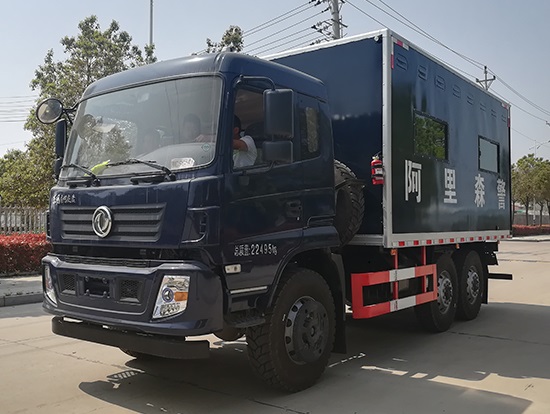 東風(fēng)六驅(qū)國(guó)五越野廂式車簡(jiǎn)介:采用東風(fēng)原廠六驅(qū)國(guó)五越野底盤EQ2220GD5DJ型,駕駛室為老款153,新款D913兩種可以選擇,康機(jī)190馬力帶增壓,機(jī)械式六檔變速箱,3.5噸軍檢分動(dòng)箱,4.5噸雙聯(lián)式軍用驅(qū)動(dòng)前橋,5噸軍用貫通式雙后橋,方向助力,離合助力,前橋介入高低檔均采用電控式,315/80R22.5越野輪胎,軸距3500+1250mm,ABS,隨車工具及備胎各一套。