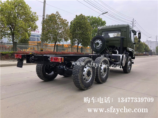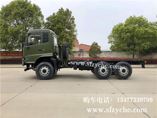 國六排放東風(fēng)天錦六驅(qū)越野底盤配置,東風(fēng)天錦D530一排半駕駛室,6×6驅(qū)動,康明斯B6.2NS6B210國六發(fā)動機210馬力,最大扭矩:850N.m/1100-1700rpm,排量6.2L、韶齒手動六檔變速箱,東風(fēng)德納車橋,前驅(qū)動橋5噸雙聯(lián)半軸結(jié)構(gòu),中后橋都為軍工德納5噸驅(qū)動橋,315/80R22.5大花紋越野輪胎,280mm雙層大梁,軸距3500+1250mm,電動玻璃,方向助力,斷氣剎,ABS,大燈自動調(diào)節(jié),自動調(diào)整臂,原廠空調(diào)。車架可利用尺寸5000mm。