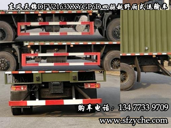 東風(fēng)天錦四驅(qū)越野廂式運(yùn)輸車(國(guó)六排放)可以上牌了!東風(fēng)牌DFV2163XXYGP6D型四驅(qū)越野廂式運(yùn)輸車:整車外形尺寸長(zhǎng)寬高7760,7960X2500,2550X3380,3580(mm)、廂體內(nèi)部尺寸長(zhǎng)寬高5400,5600X2400,2450X1900,2100(mm);廂體選裝瓦楞板設(shè)計(jì),底板4mm花紋板,后對(duì)開門,側(cè)單開門。適用于山區(qū)道路、戈壁灘道路的物資運(yùn)輸。