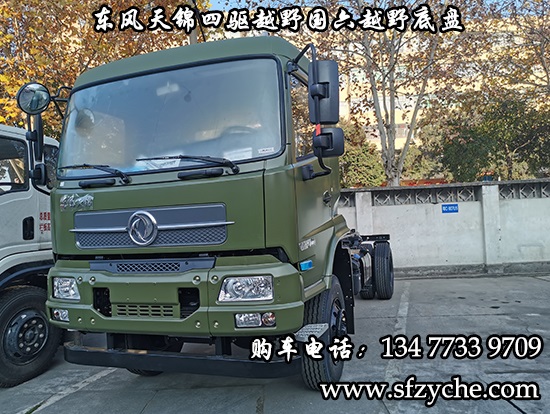 DFV2163GP6DJ型國(guó)六排放東風(fēng)天錦四驅(qū)越野底盤,東風(fēng)天錦D530一排半駕駛室,4×4驅(qū)動(dòng),康明斯B6.2NS6B210國(guó)六發(fā)動(dòng)機(jī)210馬力,最大扭矩:850N.m/1100-1700rpm,排量6.2L、韶齒手動(dòng)六檔變速箱,東風(fēng)德納車橋,前驅(qū)動(dòng)橋4.5噸,后橋10噸,10.00R20輪胎,軸距4500mm/4700mm,電動(dòng)玻璃,方向助力,斷氣剎,ABS,大燈自動(dòng)調(diào)節(jié),自動(dòng)調(diào)整臂,選裝原廠空調(diào)。