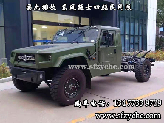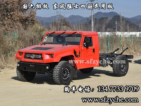 東風(fēng)猛士民用版EQ2063EYY6J型長頭單排四驅(qū)越野底盤是東風(fēng)越野車公司針對民用方面的首款軍轉(zhuǎn)民產(chǎn)品代表,其繼承東風(fēng)軍用猛士的正規(guī)血統(tǒng),品質(zhì)優(yōu)異,技術(shù)過硬。東風(fēng)猛士民用版EQ2063EYY6J采用東風(fēng)猛士M50型四驅(qū)底盤改造而成,采用東風(fēng)康明斯D4.0NS6B195型國六柴油發(fā)動機(jī),195馬力 ,排量4L帶增壓,最大扭矩600/1100-2200(N.m/r/min);猛士5擋軍用手動變速箱;分動箱為四輪全時(shí)驅(qū)動帶高低擋;軸距3800mm;整備質(zhì)量3540kg;核定載質(zhì)量2460kg;輪胎采用305/80R18MPT全鋼子午線輪胎,帶自動中央充放氣系統(tǒng);整車總質(zhì)量6000kg,國六B排放全國可上黃牌,整車尺寸:5320*2310*1950mm;最小離地間隙388mm,最大垂直越障400mm,通過性強(qiáng),適應(yīng)高海拔極寒極熱地區(qū),全國暢行無阻,最高車速可達(dá)120km/h。